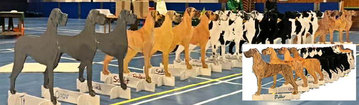 2018 Great Dane stands depicting the 6 breed standard colours based on actual individual Danes for the Midland & West of England Great Dane Club 70th Platinum Show 2018