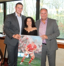 Dan Lydiate, me looking very teeny and the lovely gentleman who won the bid for the painting of Dan